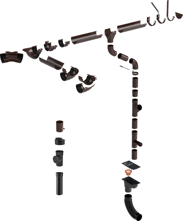 Kompletny system ochrony rynien i rur spustowych - foliowanie, wewnętrzny szew rury gwarancją wysokiej estetyki i braku zarysowań.