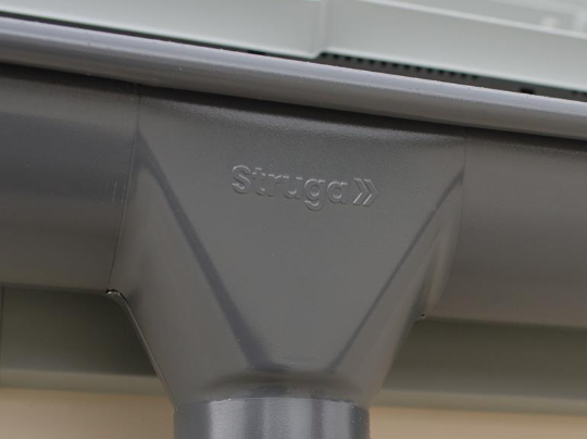 System Rynnowy Struga produkowany jest z wytrzymałej blachy szwedzkiej GreenCoat RWS (Rain Water System), zabezpieczonej dwustronną powłoką cynkową i grubą warstwą lakieru.