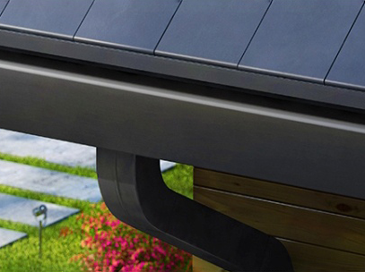 System rynnowy oparty na kwadratowym profilu rynny i rury spustowej. Nowa rynna kwadratowa Galeco daje możliwość uzyskania nowoczesnego i estetycznego wyglądu domu z okapem.